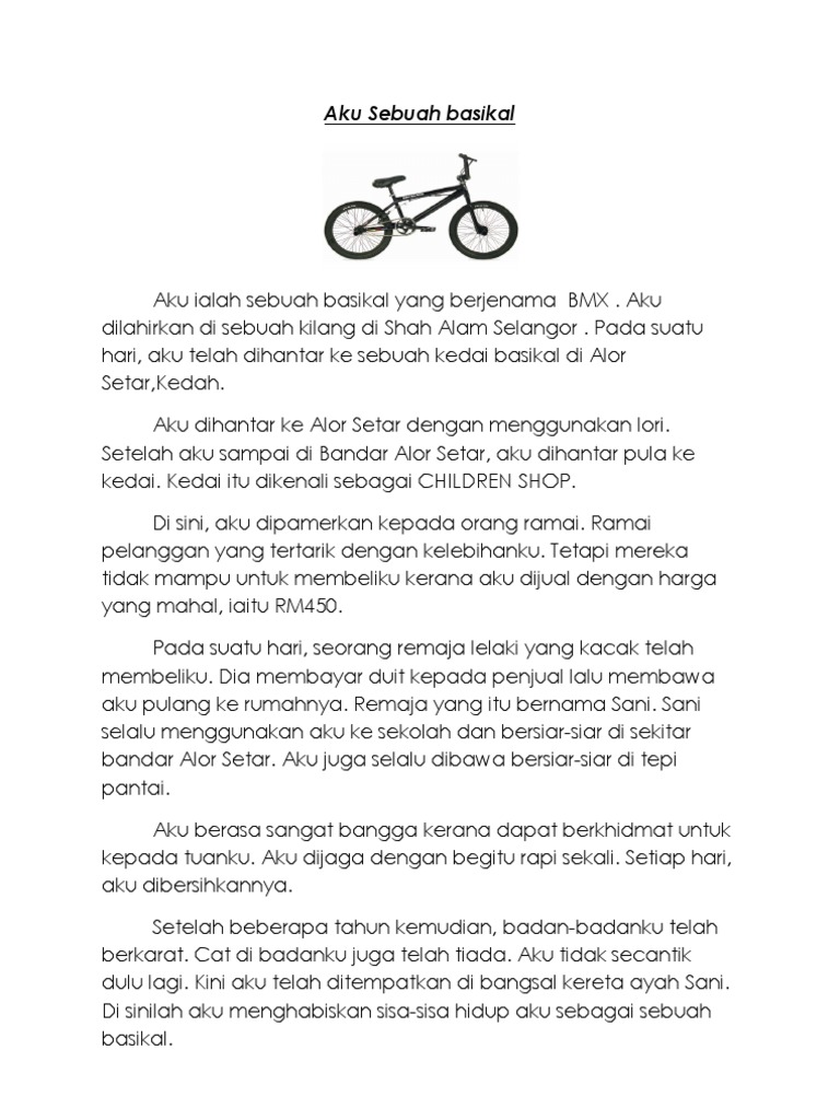 Aku Sebuah Basikal Karangan Contoh SPM 2010 Aku sebuah ke sebiji weh basikal. Pengenalan berasal dari Jepun. Contoh karangan 1.