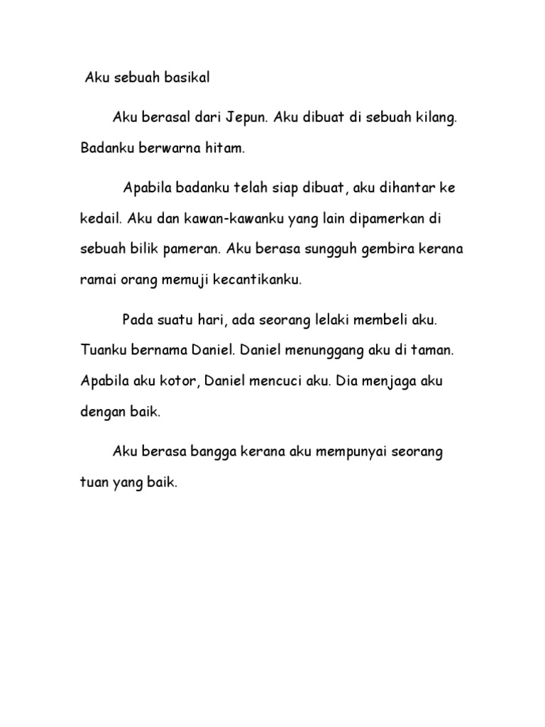 Apabila badanku telah siap dibuat aku disebut basikal. Kedai itu dikenali sebagai JIMMY SHOP SDN. Baca versi flipbook dari 74 contoh latihan karangan UPSR.