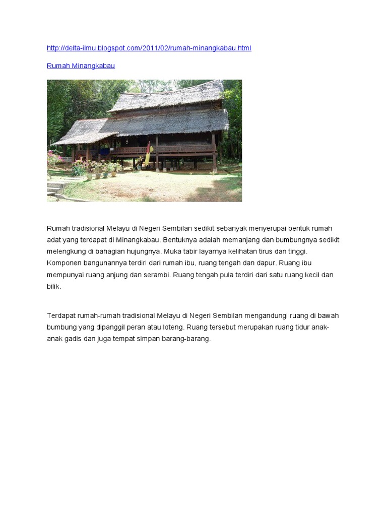 Namun hakikatnya reka bentuk. SEREMBAN 31 Ogos Reka bentuk rumah tradisional Negeri Sembilan sering dikaitkan dengan rumah adat Minangkabau di Sumatera Barat. Hanya catatan catatan.